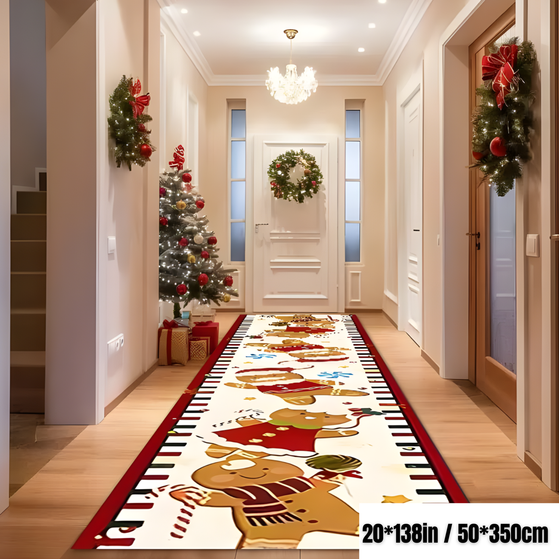 Dale un toque festivo y acogedor a tu hogar con nuestra alfombra estilo runner 🎄. Su encantador diseño de hombrecitos de jengibre 🍪✨ aporta alegría navideña a cualquier pasillo o dormitorio.