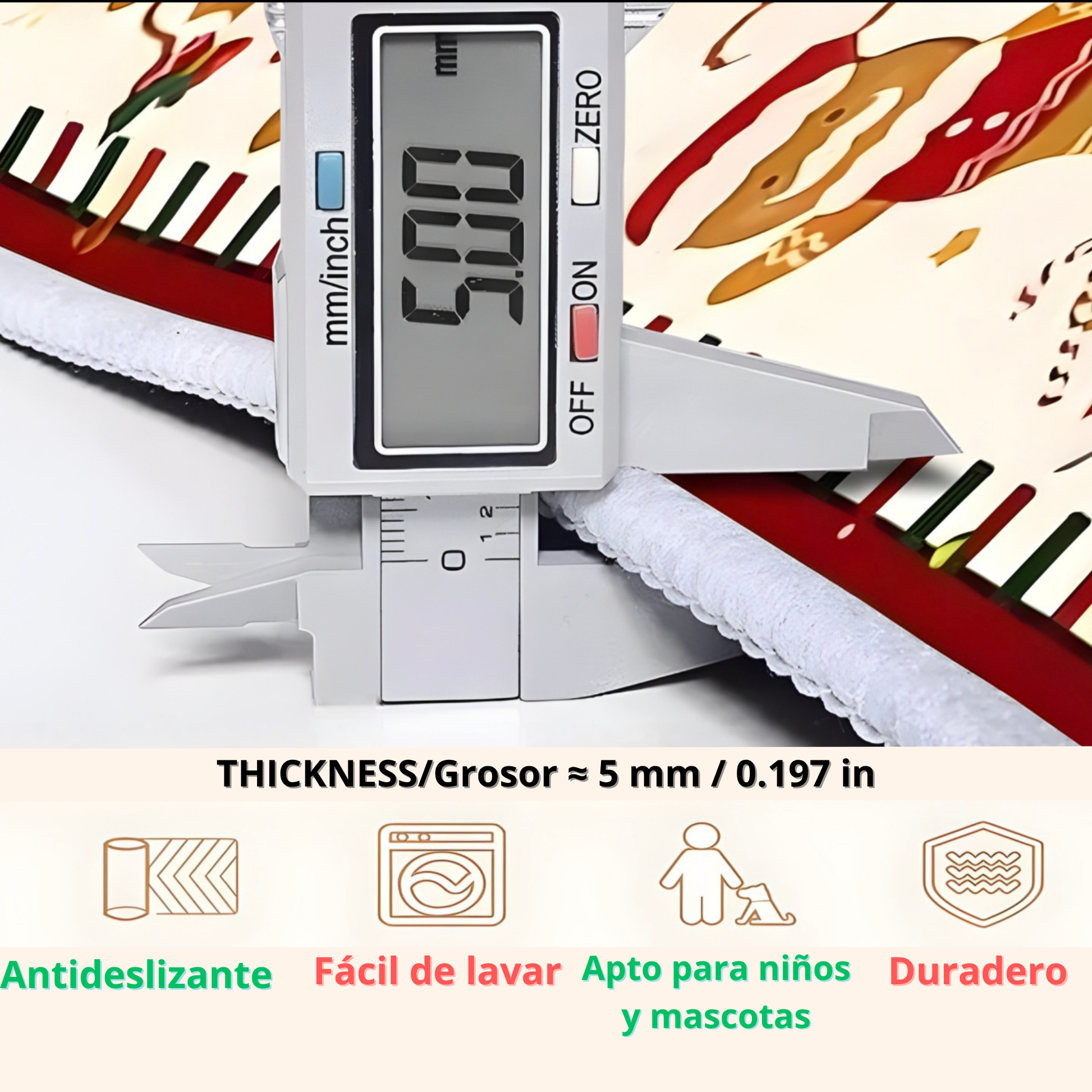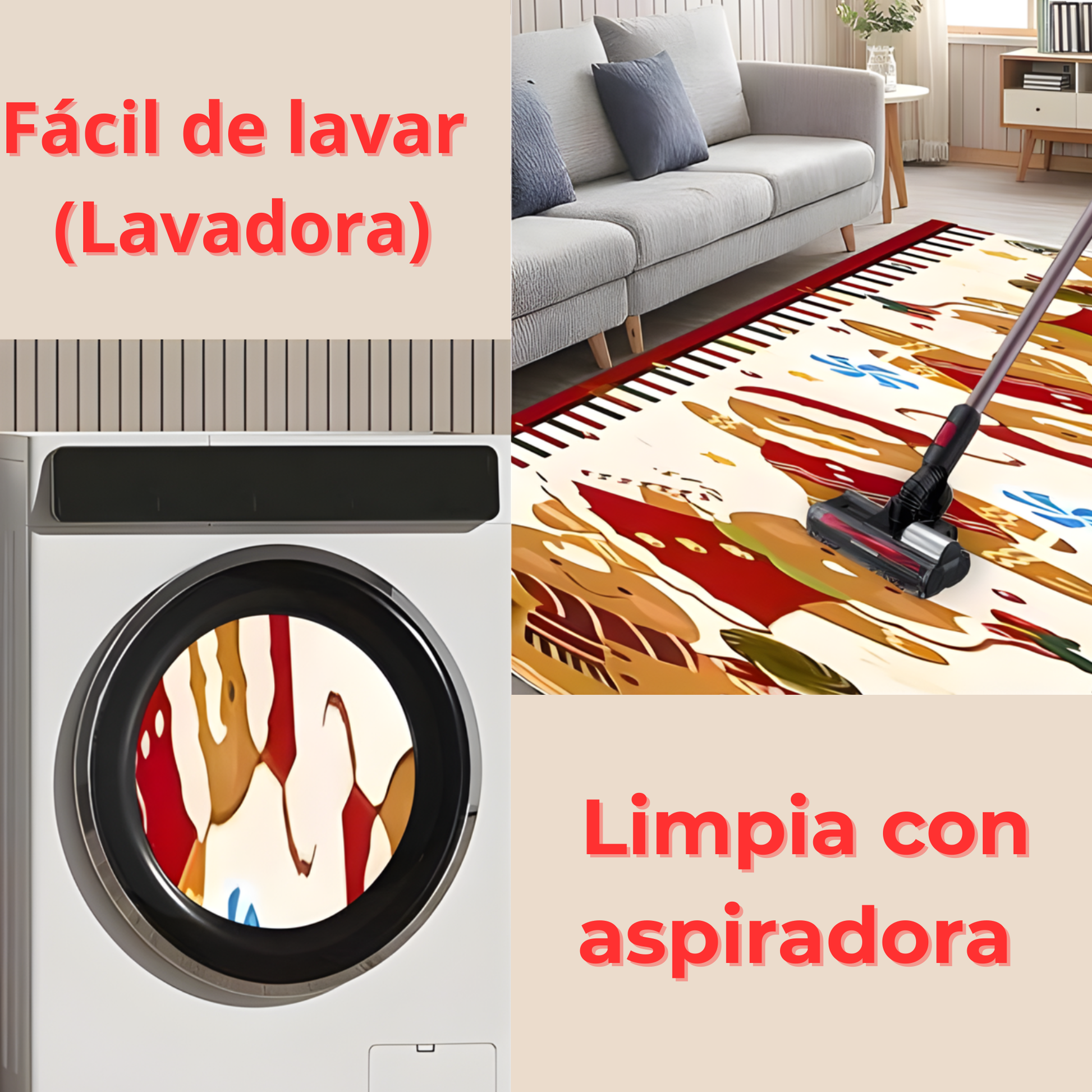 Fabricada con materiales suaves y totalmente lavables 🧼, ofrece un mantenimiento sencillo y una larga durabilidad. Su textura agradable proporciona una sensación cómoda bajo los pies 👣, ideal para disfrutar durante toda la temporada.